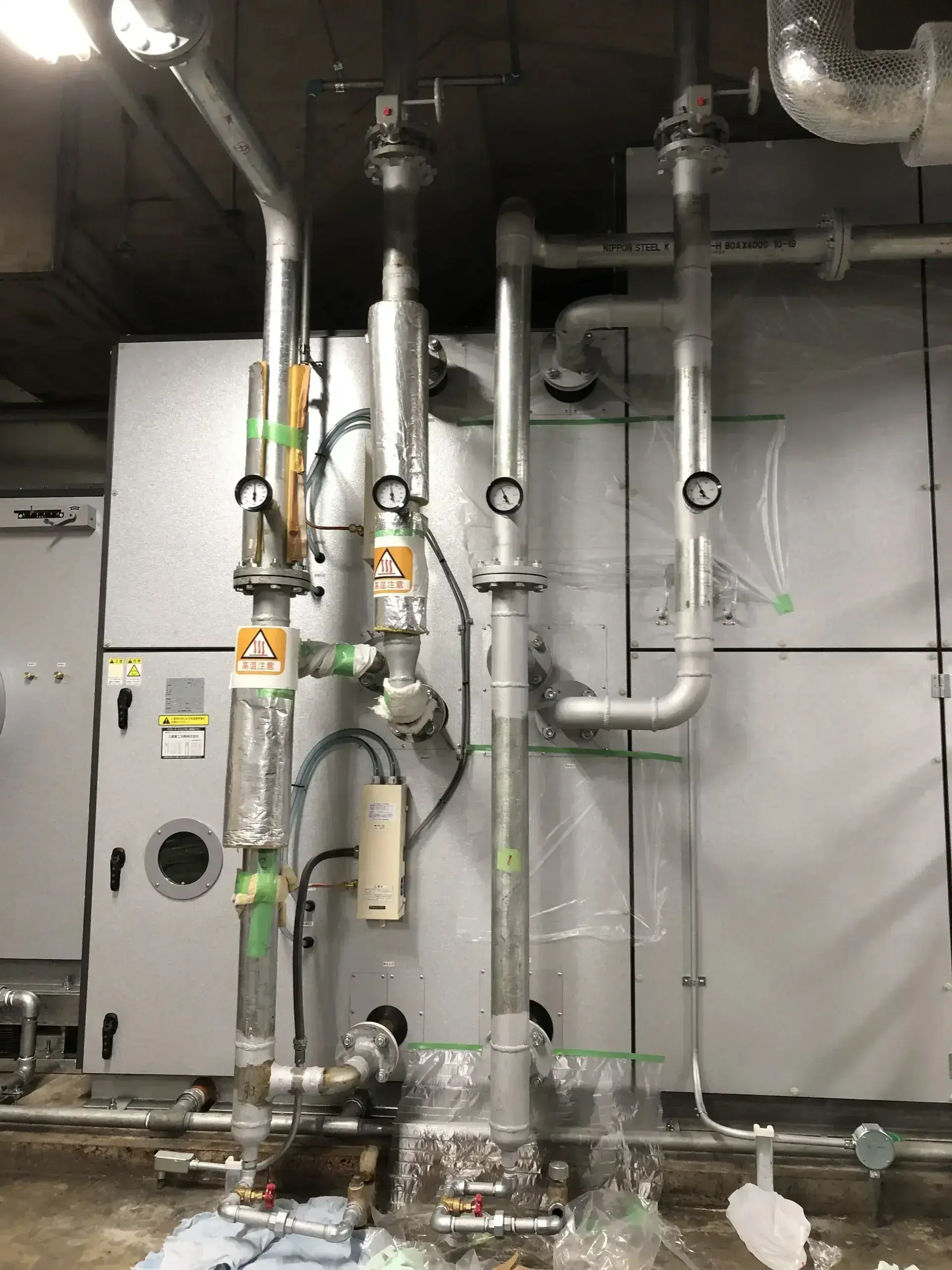 店舗やオフィスビル、工場で使用される産業用の空調機器の設置工事や、冷媒、冷温水、冷却水などの配管工事を中心に行っています。さらに、定期点検も実施し、様々なトラブルに迅速に対応し、お客様の安全・安心を維持します。